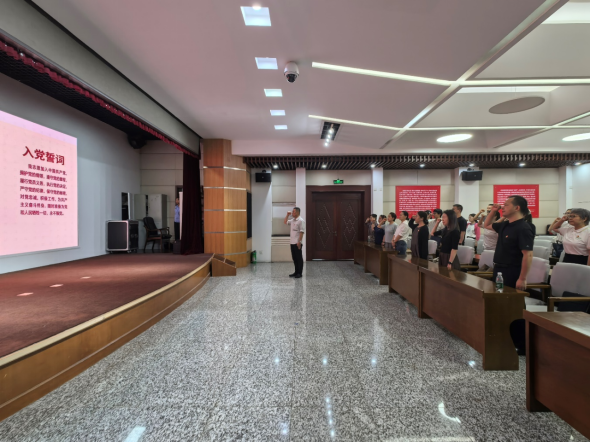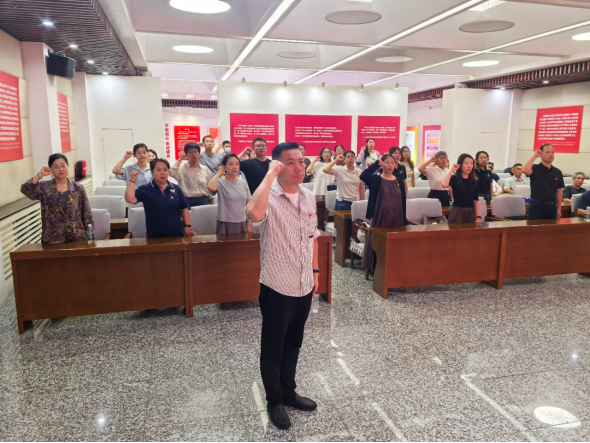 参观结束,全体党员干部庄严肃立,面向鲜红党旗重温入党誓词。